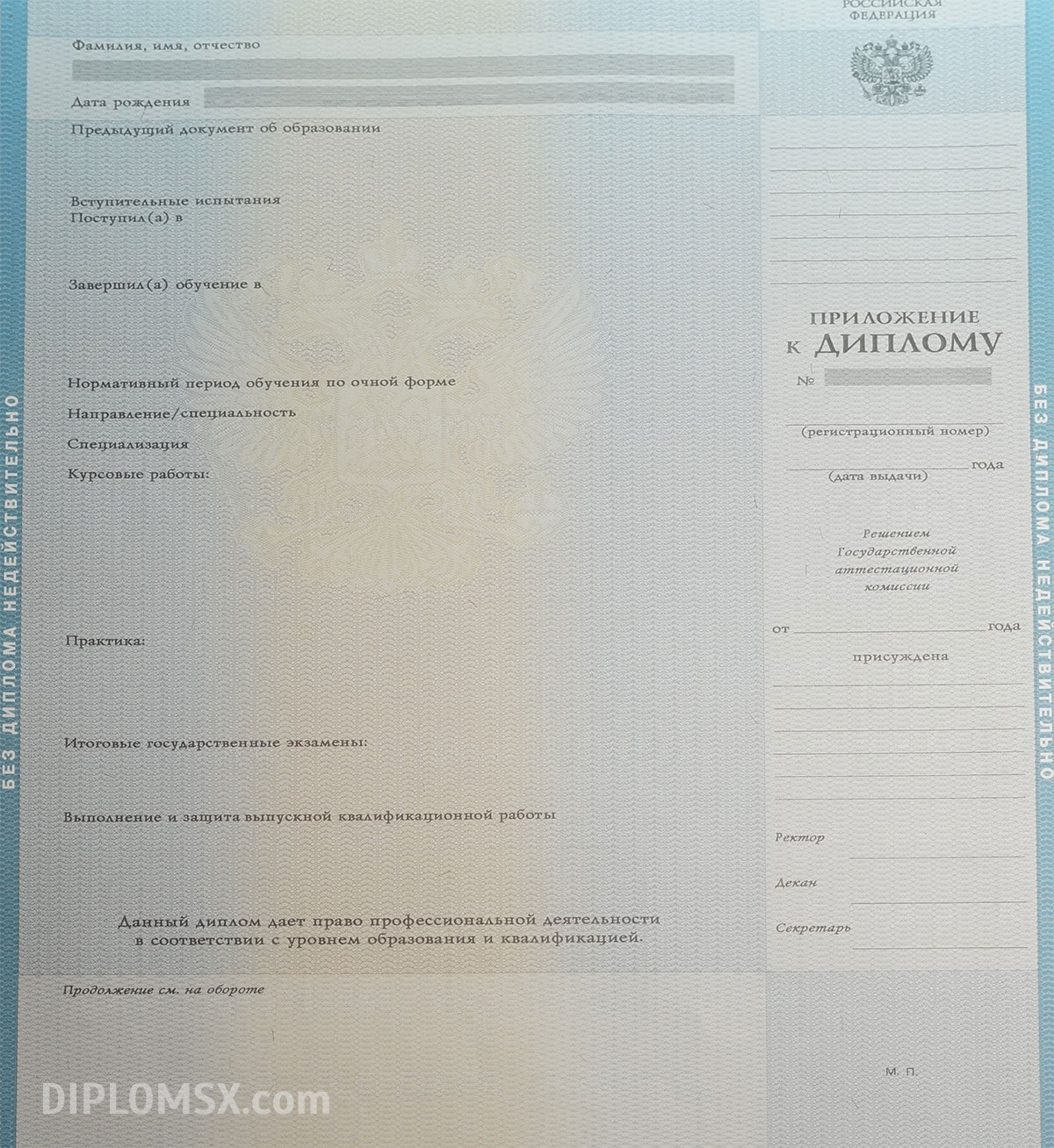 Современное оборудование, опыт и высокая квалификация персонала гарантируют подлинность и качество изготовленного диплома о высшем образовании!