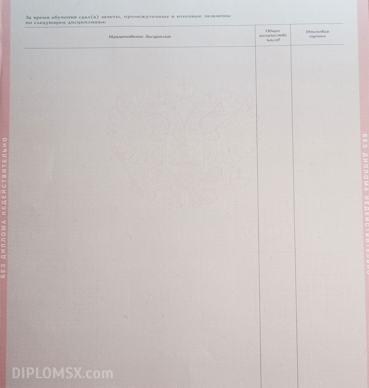 Изготовим не только сам диплом, но и вкладыш с указанием пройденных дисциплин, потраченных на изучение часов и заработанных при сдаче экзаменов и зачетов отметок. К такому диплому техникума не смогут возникать вопросы ни у кого, он не вызовет сомнений ни у работодателей, ни у членов приемных комиссий институтов.
